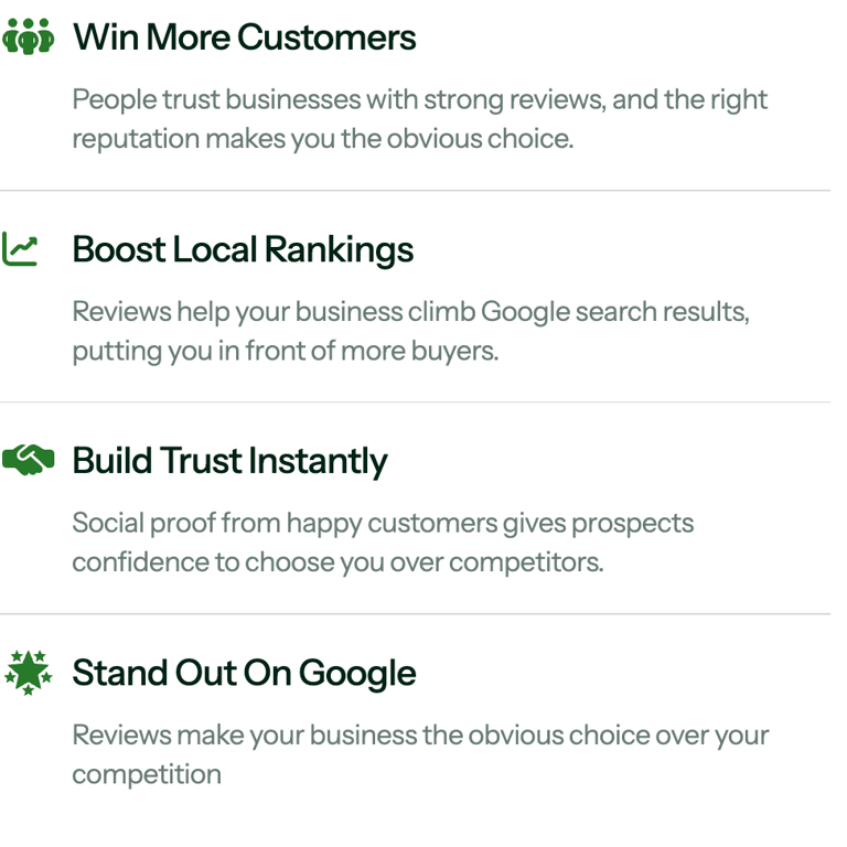 Start Getting the Reviews You Deserve. Start Ranking Higher On Google. Start Getting Chosen Over Your Competition